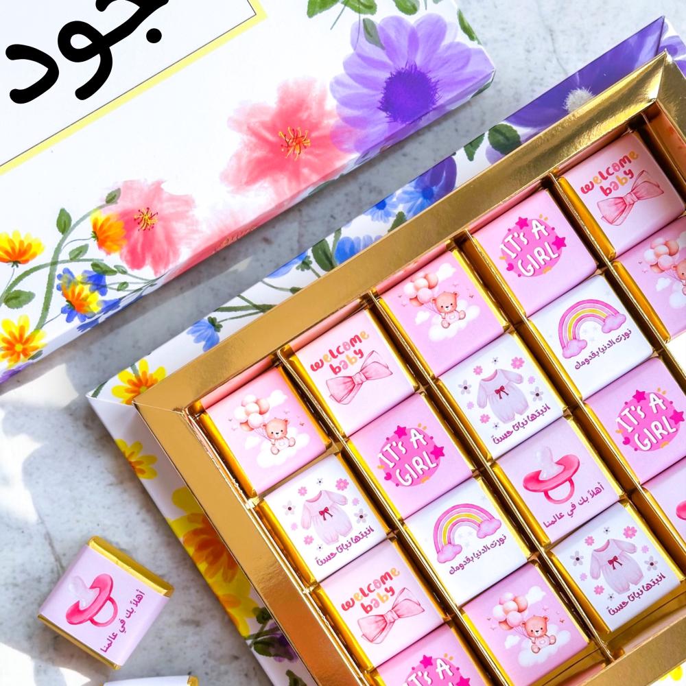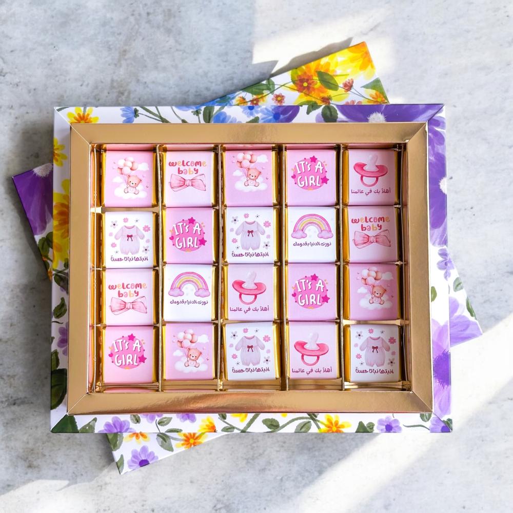 يمكنك طلب كتابة اسم المولودة على غطاء البوكس