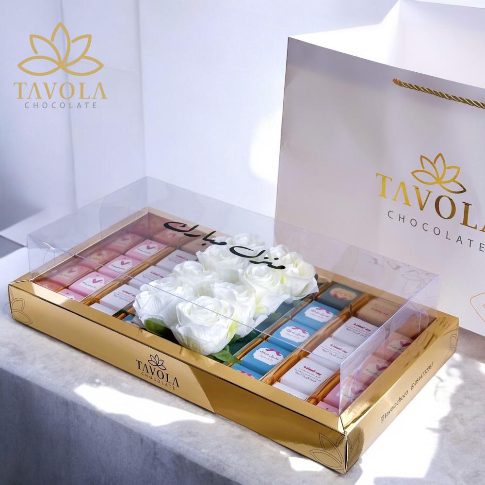 الشوكولاته مغلفة بعبارات تهنئة بالمنزل الجديد