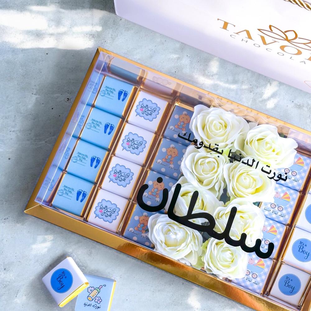 يمكنك طلب كتابة اسم المولود على غطاء البوكس